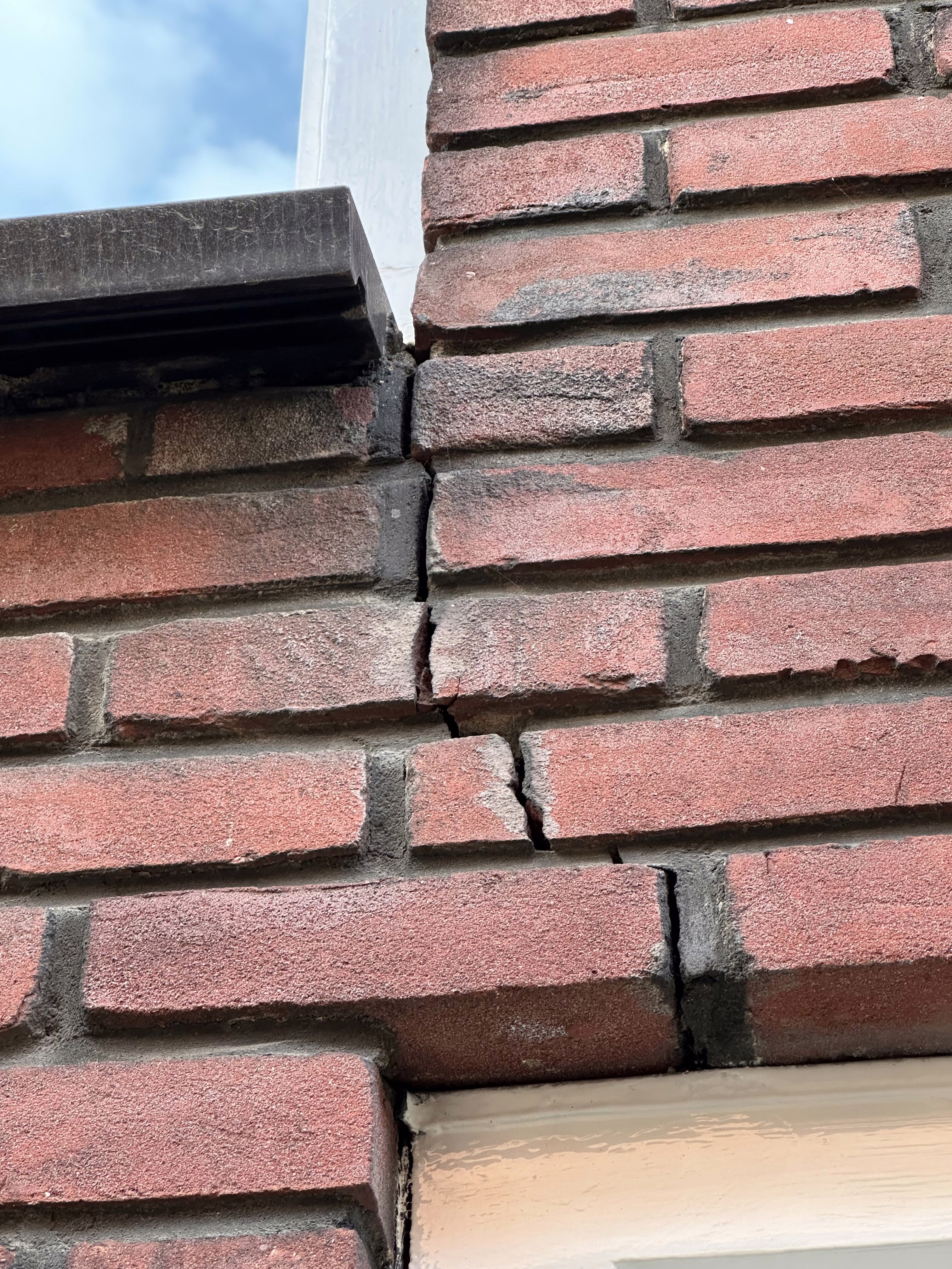 Als de scheur over meerdere stenen heen loopt, is dit meestal geen oppervlakkige schade maar een structurele verzwakking.